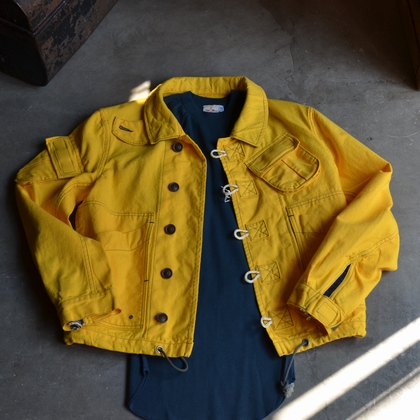 インディゴを引き立たせる色合いのYELLOWにはこの時期の肌寒くなる時に活躍するデニムジャケット等と合わせれば、デニムジャケットを爽やかにしてしまう魔法の色!見て触るよりも着てみるとより一層YELLOWの魅力がわかる一着です。