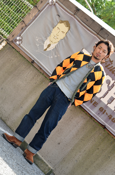 オーソドックスな501XXモデルのデニムパンツに、インナーには勿論Two Moonの丸胴SWEAT、足元はエンジニアブーツでガッチリ固める。