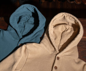 昨日ご紹介いたしましたヘンリーネックスウェットパーカと同様、フードの生地を二重にすることによってフードに立体感をプラス。