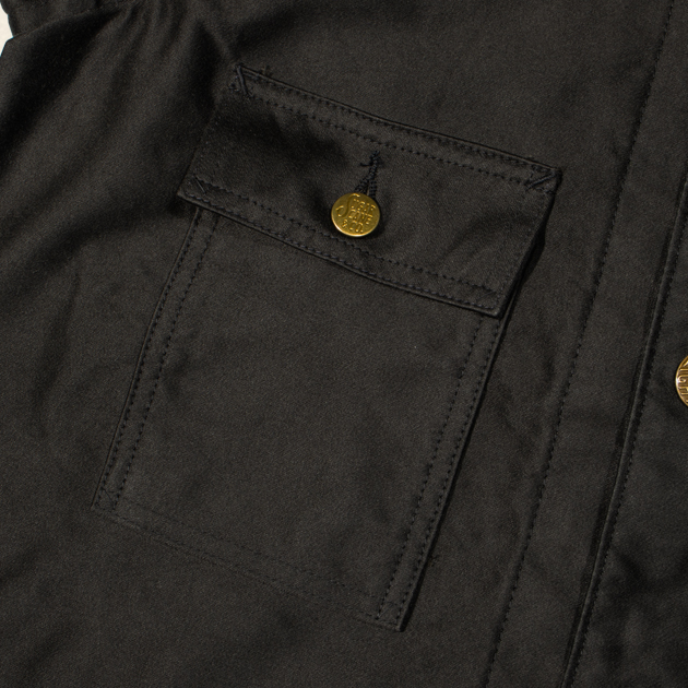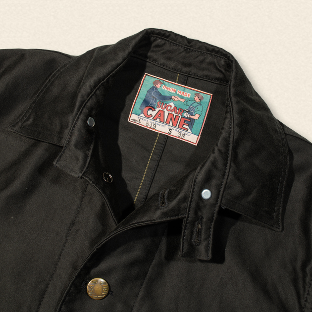 右胸のフラップポケットにはSUGAR CANEのタックボタンが使用されます。