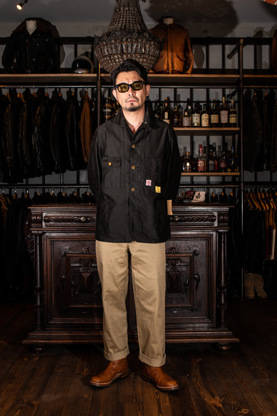 今作はHEAD LIGHT1930年代のワークコートをベースに、Fiction Romanceのエッセンスとしてヴィンテージには存在しなかったモールスキンファブリックを纏った一着です。