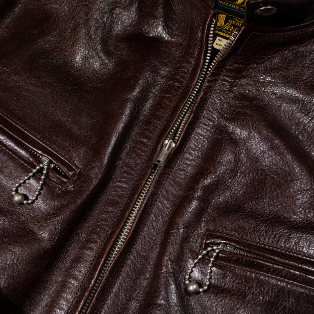 使用しているファスナーは40年代の角型TALONを元にオリジナルで製作し、胸にはボールチェーンファスナーが両胸に配置されている。