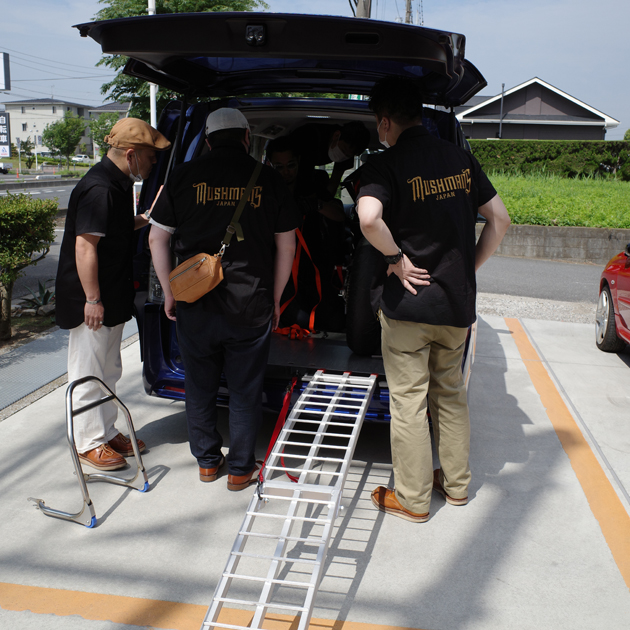 この日は、MUSHMANS Racing Teamの車輛搬送用車が、MUSHMANS新店舗建設でもお世話になった"草間工務店"草間氏の御協力によってトランスポーター内装カスタムが施され戻って来た(トランポ専門店以上の仕上がり!!)ので、チーム員が集まりました。