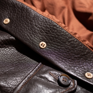 また、極めてしなやか且つ軽量でありながら、脆弱な雰囲気を一切醸さないのが特徴的で、レザージャケットを楽しむ上での革の圧倒的な存在感を残しつつも、イージーな着用感を実現している稀有なレザーマテリアルなのです。