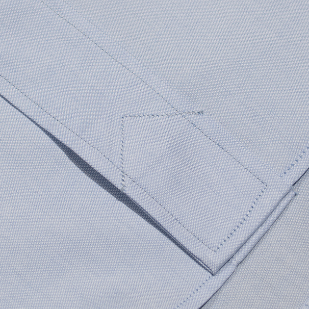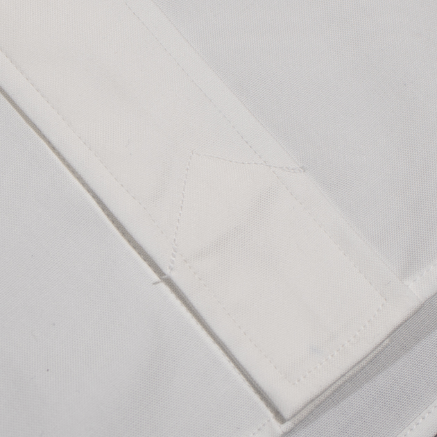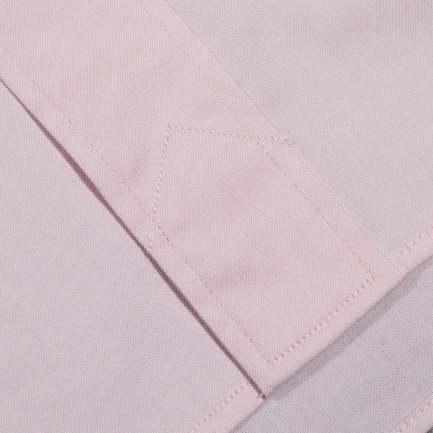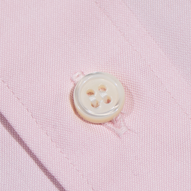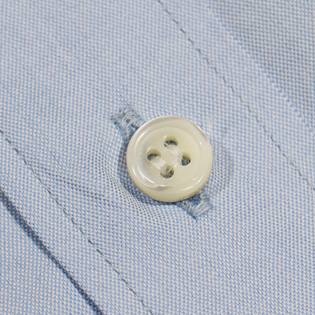 伝統的なボタンダウンシャツのディテールである、前立て三角折り返し。