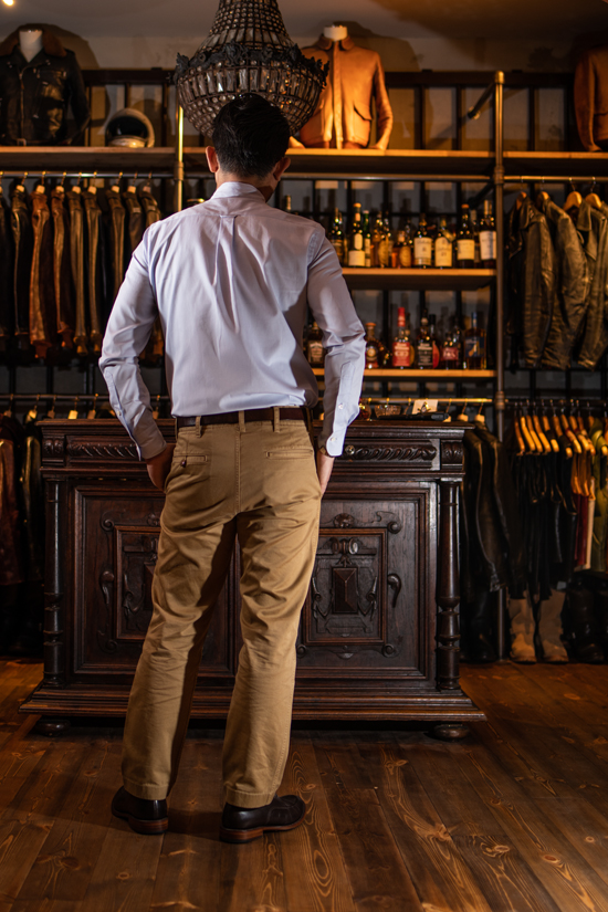 前面は片側パッチポケット仕様、定番的な配置とポケットデザインは空気のような存在です。