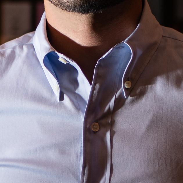 ボタンダウンシャツの見せ場と言えるのが、この襟形状ですね。