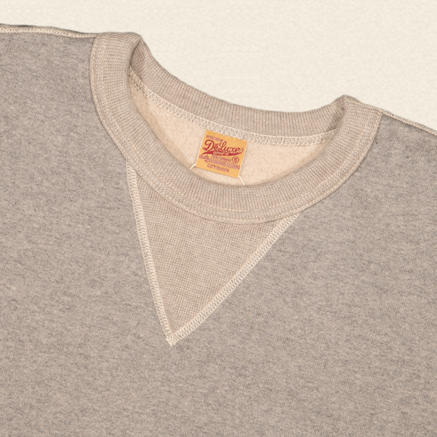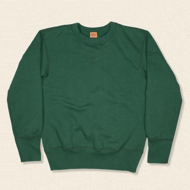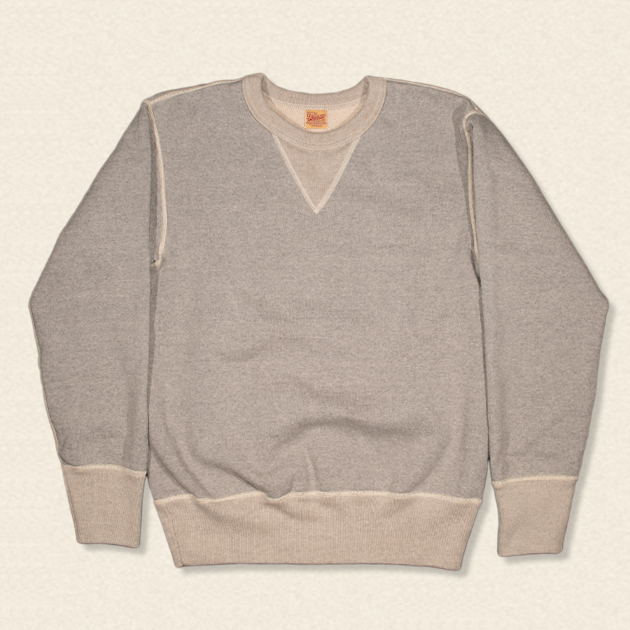 吊編機によって自然落下で編み上げる工程を経ながらも、デラックスウエアによって吊編機に手を加えた事で『最高密度』を目指したオリジナル吊裏毛。