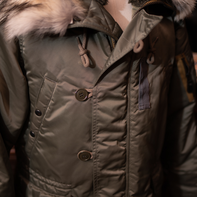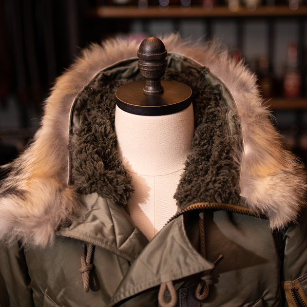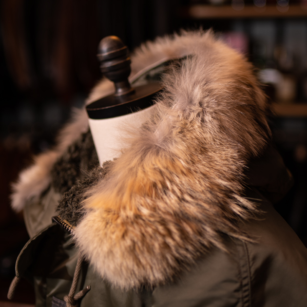 そしてこのN-3B、フードに取り付けられたリアルコヨーテファー(本毛皮)は着脱が可能というのも嬉しい。