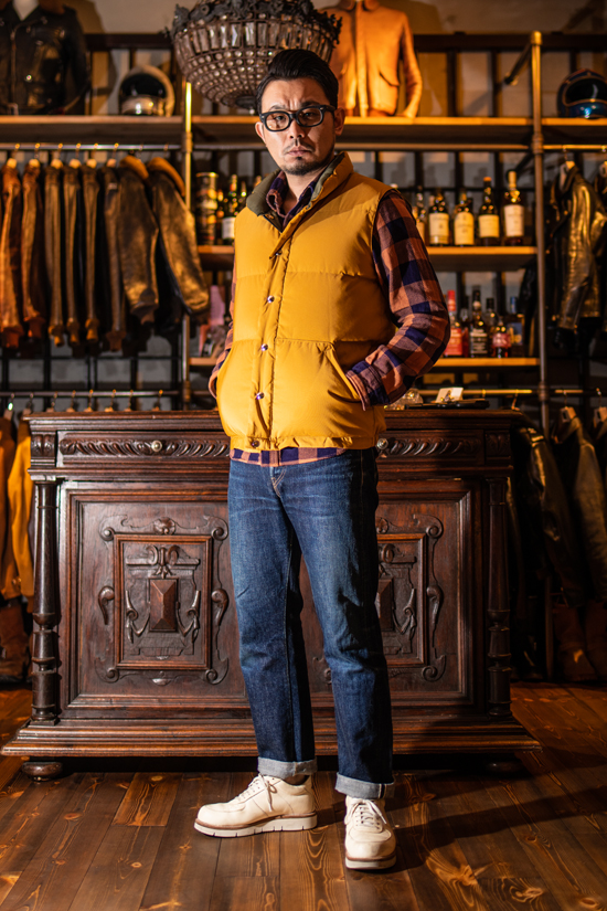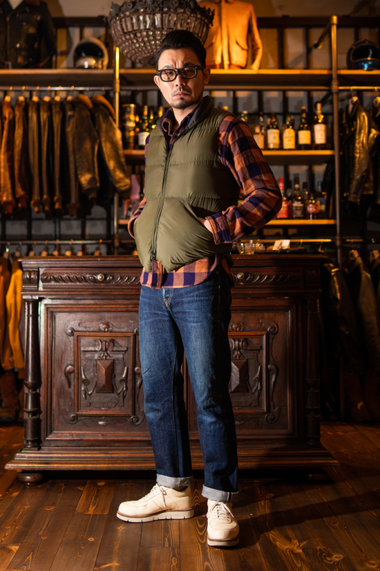 インナーにはDELUXEWAREのフランネルシャツを着用した状態です。