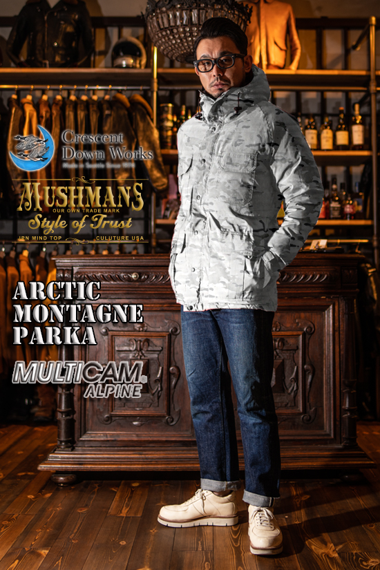 さて、私自身でARCTIC MONTAGNE PARKAを着用し、Multi Cam® ALPINEをコラージュした画像をご用意いたしました。