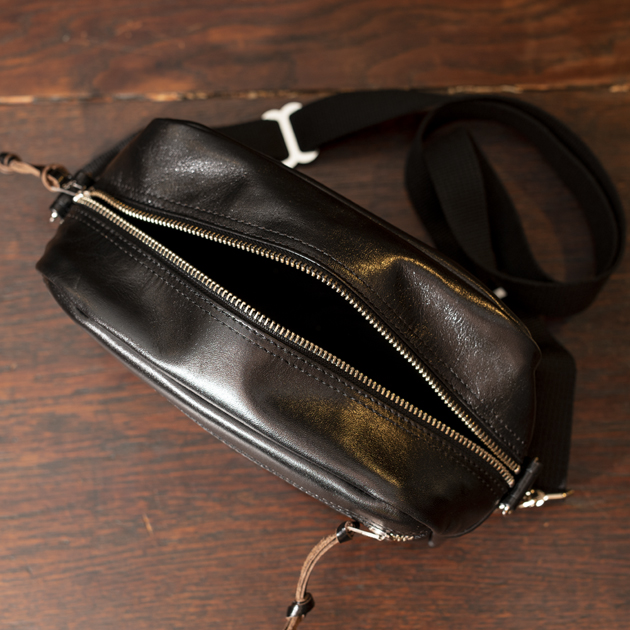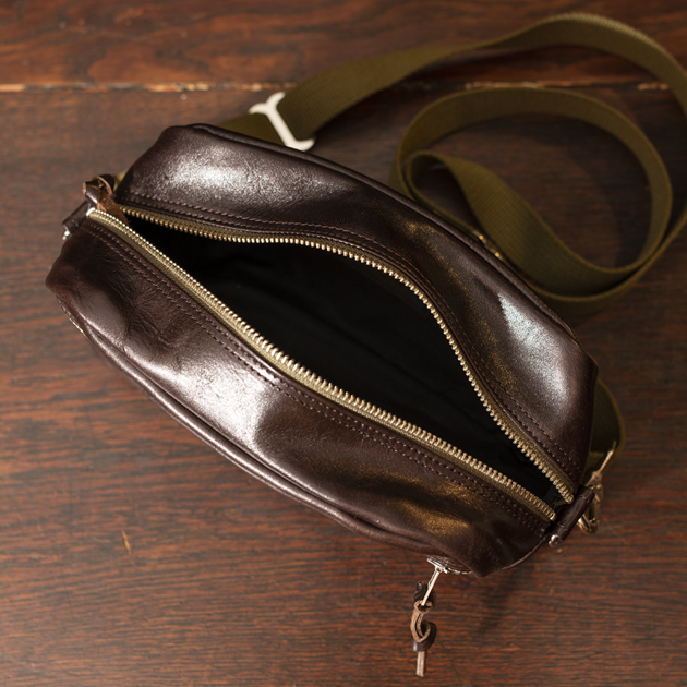 BAG上部が開くタイプとなっており、ショルダー掛けした状態で楽に内部にアクセス可能。