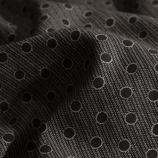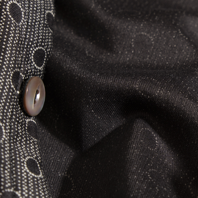 色を抜く事で柄を表現する抜染プリントですから、染料を乗せる通常のプリント技法よりも緻密な柄を表現するのが難しい訳ですが、本製品はその限界に挑戦。