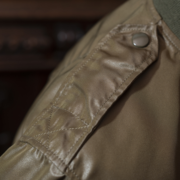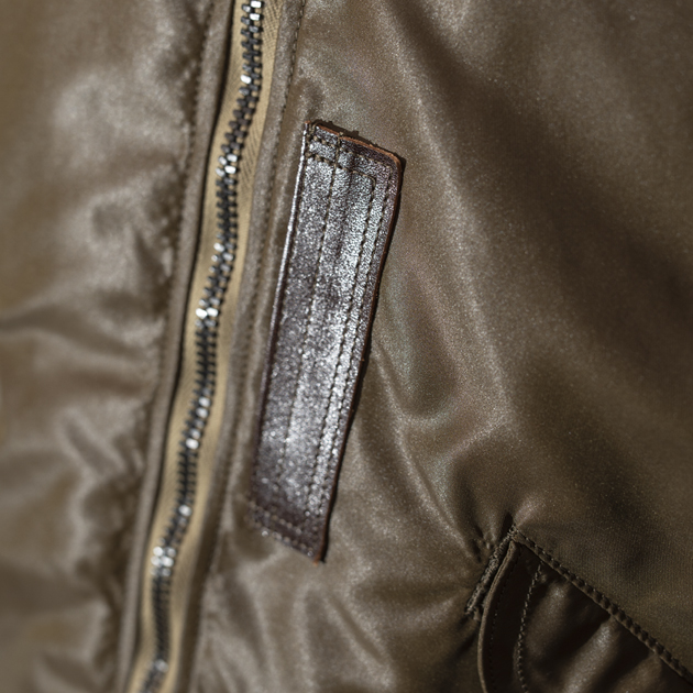 独特のヌメリのある光沢感を発するナイロンツイルのアウターシェルは、当時のL-2でも施されていたとされる[シレー加工]を施す事で、濡れたような滑らかな質感を発しております。