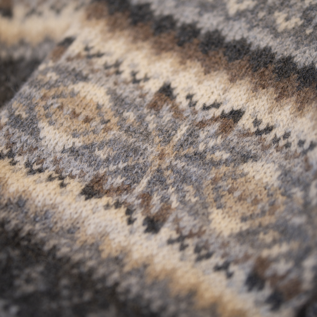 このフェアアイル柄は、スコットランド・シェットランド諸島にある"フェア島"で伝承されるセーターの編み柄。