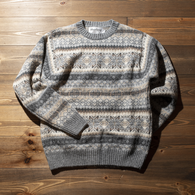こちらはMUSHMANSで初入荷となる、フェアアイル柄のクルーネックセーターです。