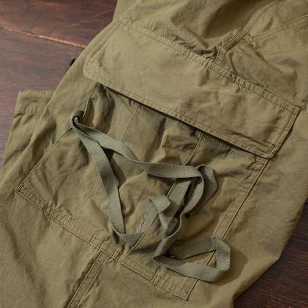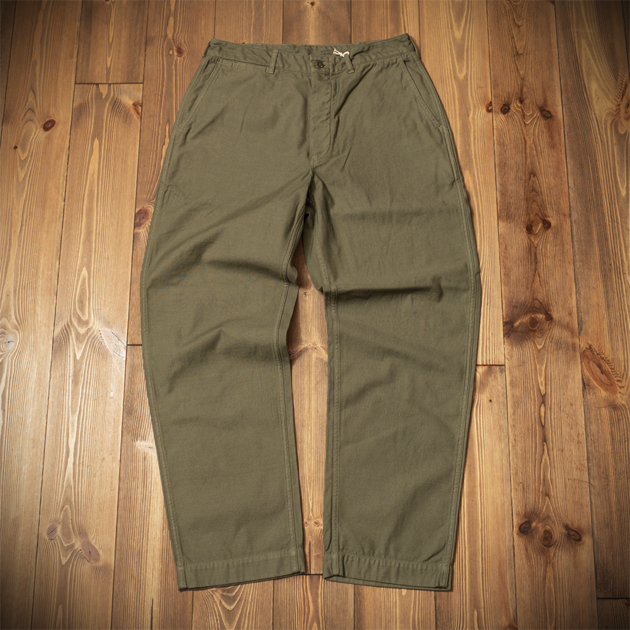 先に御紹介したジャングルファティーグパンツに比べ、若干のテーパードシルエットとなっておりますので、スッキリとした着用感が特徴ですね。