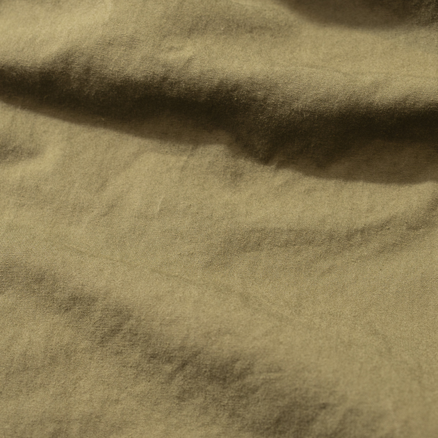経糸の密度を高めて織られている為、光沢があるのが特徴ですが、緯糸との兼ね合いで通気性を担保している為、こういった用途には非常にマッチしたマテリアルと言えるでしょう。
