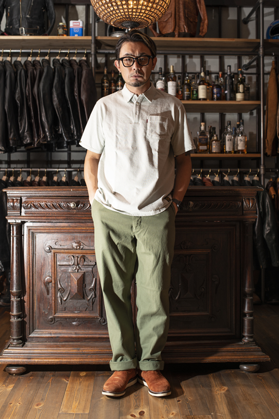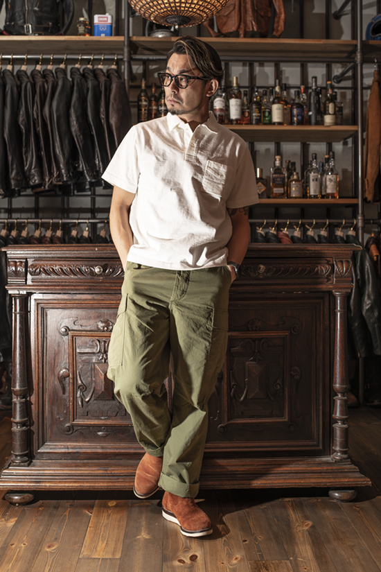 コーディネート例としては、ここ数年個人的にハマっている、襟付きカットソー。先に御紹介したJackmanのアイテム同様に、天竺生地をPOLOシャツ化したアイテムで、DELUXEWAREの新作アイテム。