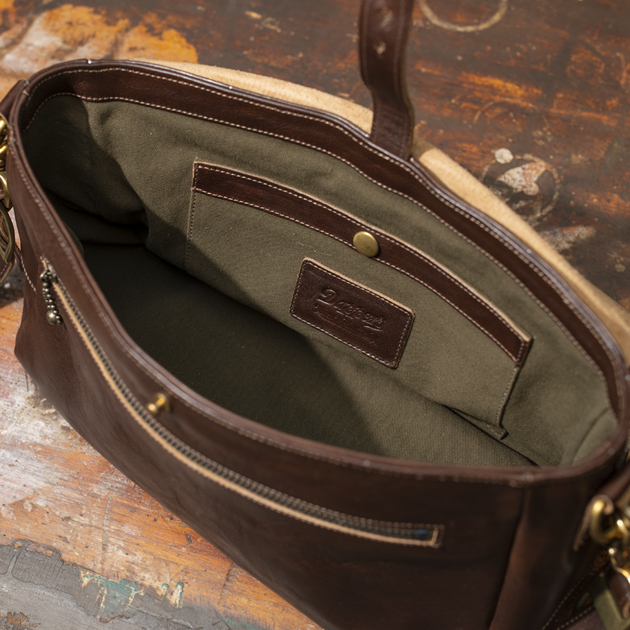 気になる内部構造ですが、こちらのBagにはコットン×ウールサージのファブリックを使用したライニングが取り付けられ、さらに内ポケットが配されます。