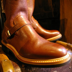 遊び心溢れるパッチカスタムや、ショート丈が愛らしいデザインながら、製法や革質等、長期間の使用に耐える事が出来る男らしい仕様。