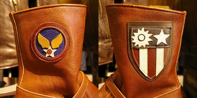 中には、フライトジャケット用に準備したローカルメイドパッチを靴に縫い付けるというユニークなタイプまで存在する。