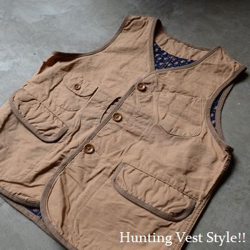【ハンティングベスト】といった無骨な男のワークウェアでありながら、
