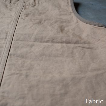 麻混特有のネップ感のある生地は単色でありながら、独特の雰囲気を醸し出すポイントで、インナーを選ばず着用可能なベストとなっている。