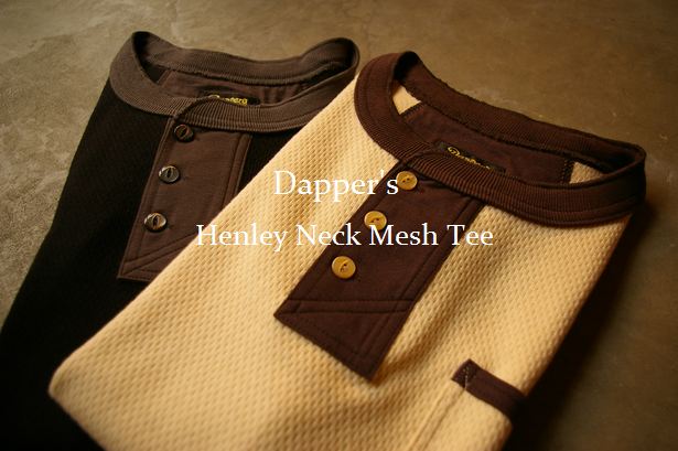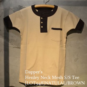 Henley Neck Mesh S/S Tee [LOT948]NATURAL/BROWN・BLACK/CHACOAL