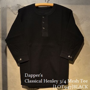 Classical Henley 3/4 Mesh Tee [LOT947]BLACK