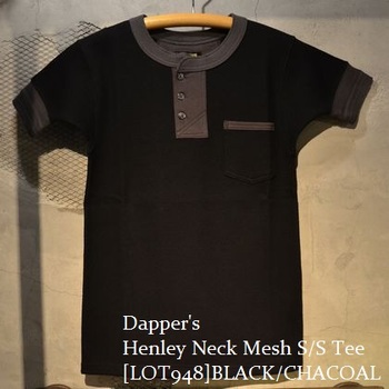 Henley Neck Mesh S/S Tee [LOT948]BLACK/CHACOAL