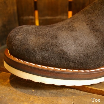 アウトソールにはVIBRAM社製#1010ソールを使用し見た目のボリュームを確保しながら、反り返りがよく、履き心地の良いソールとなる。
