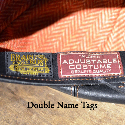 ADJUSTABLE COSTUMEとBRAIN TRUSTのダブルネームタグを装着しております。