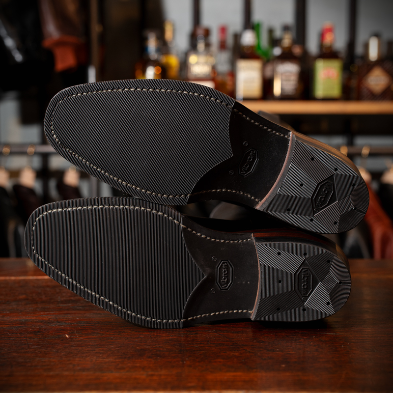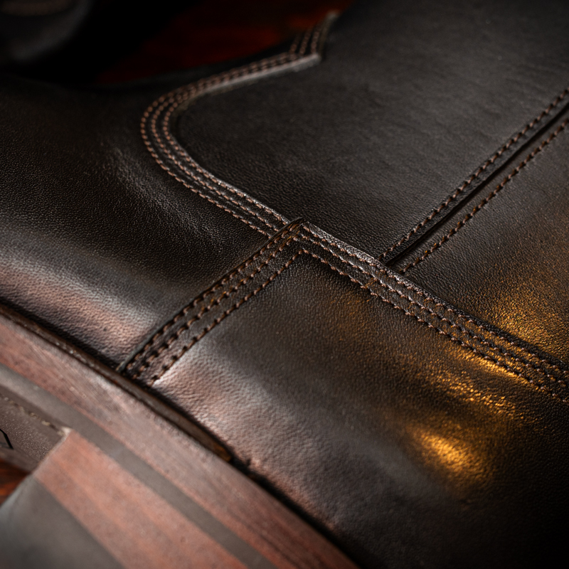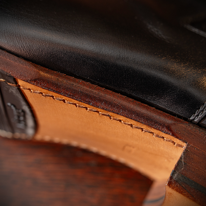 履き込むほどに、擦れた箇所が鈍い艶として立ち上がり、陰影が深くなる。