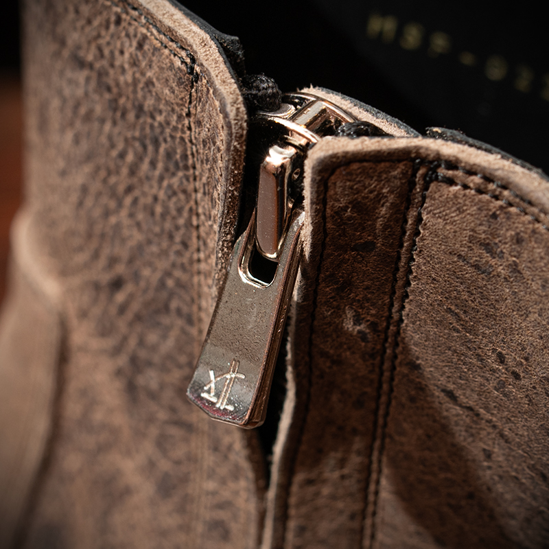 このジッパーの信頼性は世界レベルでトップクラスに君臨し、レザージャケット以上に耐久性が求められるサイドジップブーツ用のパーツには最適な選択です。