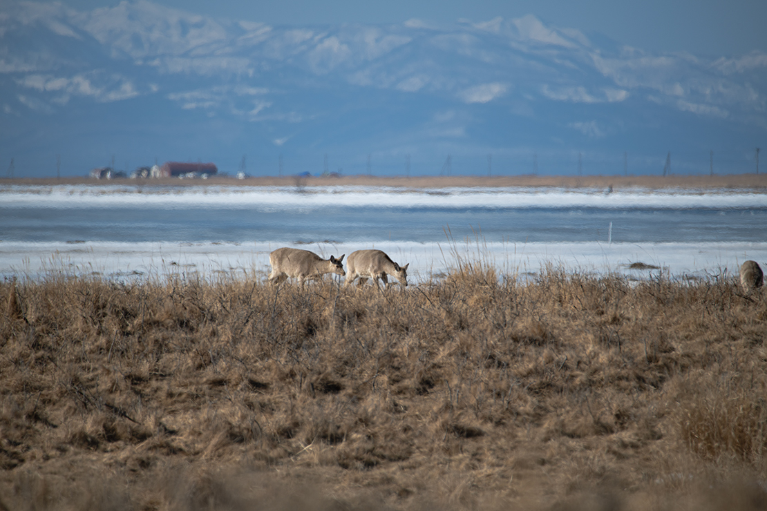画像:野付半島、草を食む蝦夷鹿