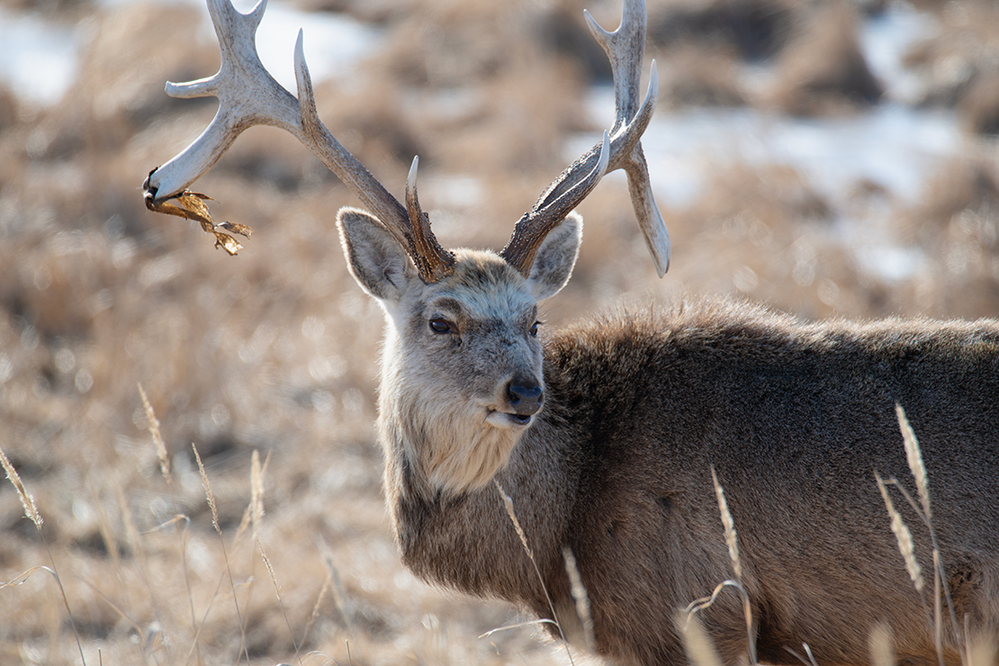 画像:野付半島、蝦夷鹿の角にゴミ