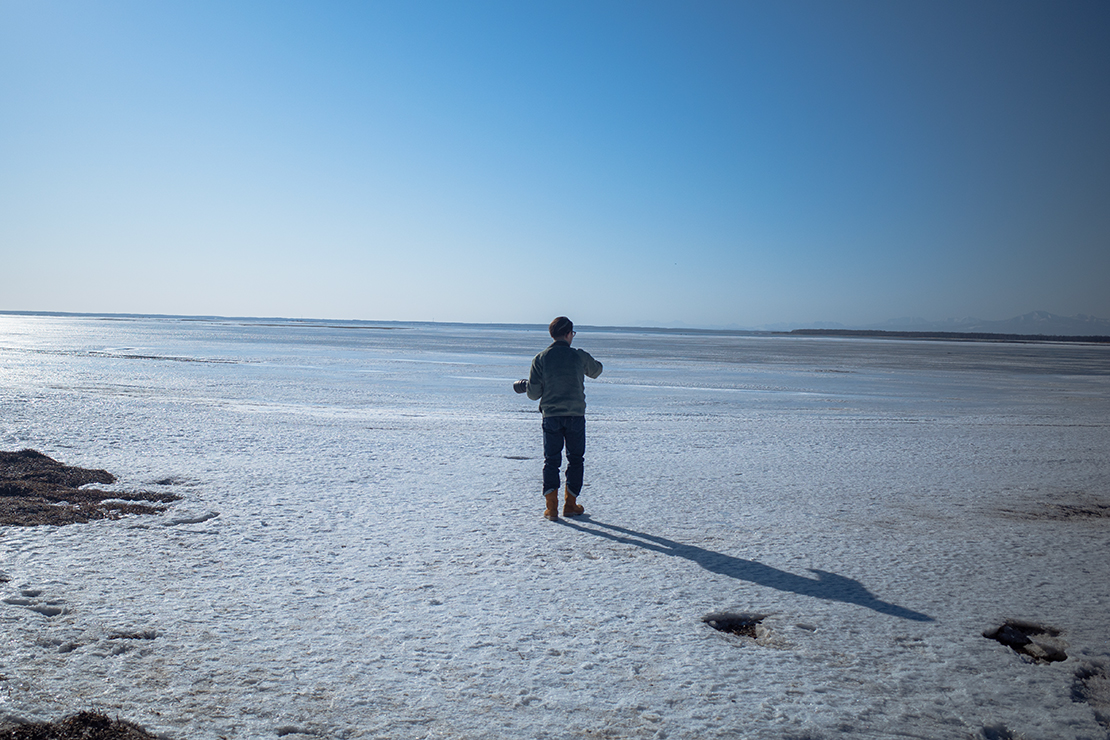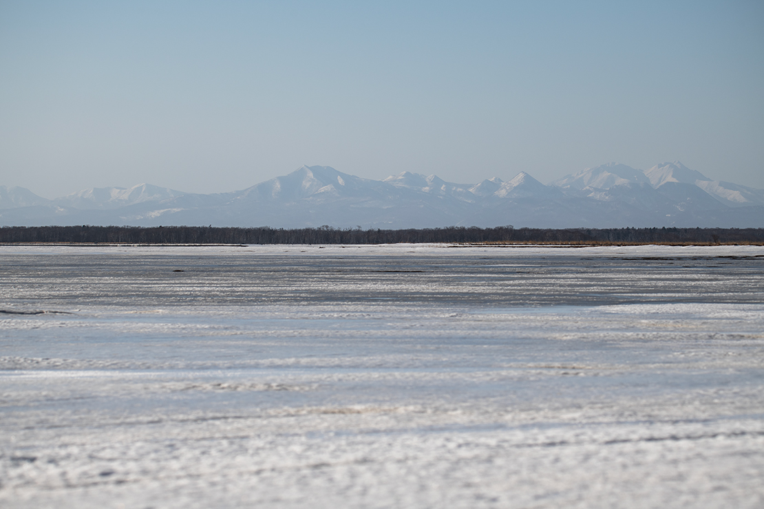 この野付半島の野付湾内側は、海流が停滞しているからなのか、凍り付きます。