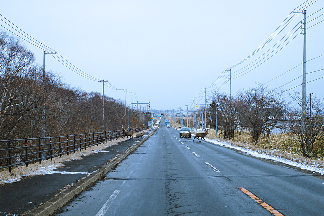 画像:鹿と車の交通戦争