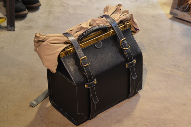 独特のシボと、レザーのコシはまさにこのBAGを製作するに相応しいマテリアルである。