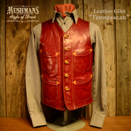 新たな提案を始めます。 MUSHMANS Original Lether Gilet "Tennessean"のご紹介。