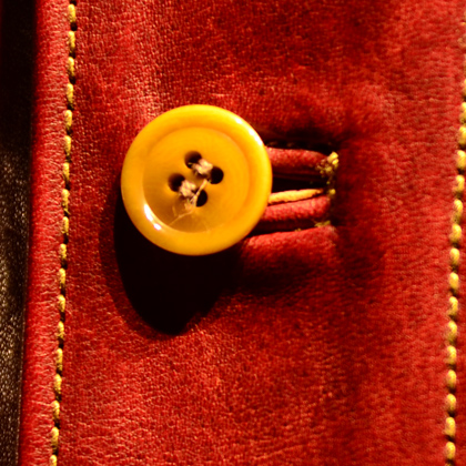 また、ステッチによってVゾーンを囲み、それをボタンホールまで落とすというデザイン性も拘りのポイントです。