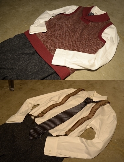 暑くなったらニットを脱いでタイを外してサスペンダースタイルでもラフになりすぎませんし、