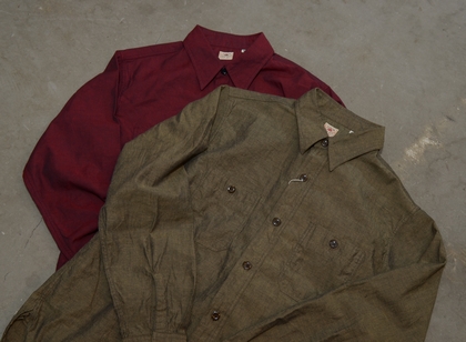 SUGAR CANE COLOR CHAMBRAY PRINT L/S WORK SHIRT(WINE/OLIVE)
