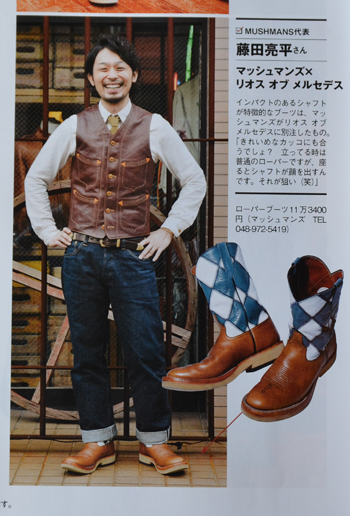 様々な業界のブーツマン達が紹介されておりますが、原色を使ったブーツは私だけ