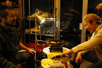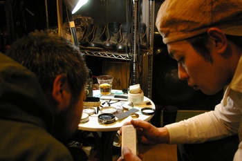 PHOTO2:何かを真剣に見つめ、話し込むホワイトクラウド後藤さんと代表