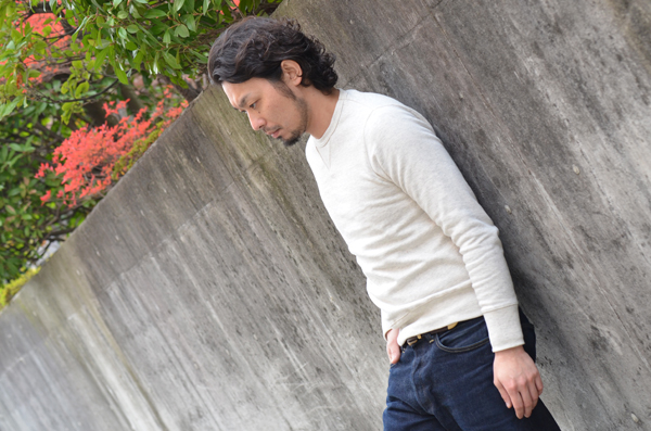 非常に動きやすく、厚ぼった過ぎない生地も手伝って上にレザーを羽織りたくなるSWEATです。