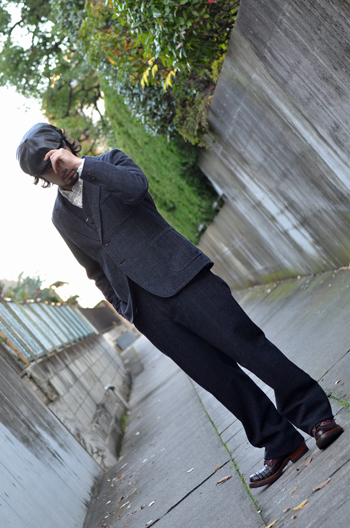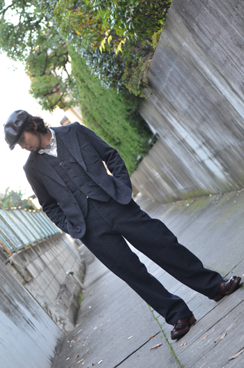 ADJUSTABLE COSTUMEがハリスツイードへ別注した、スペシャルファブリックを使用した一着。