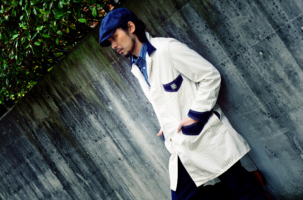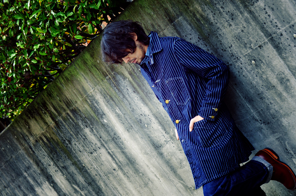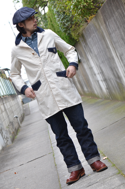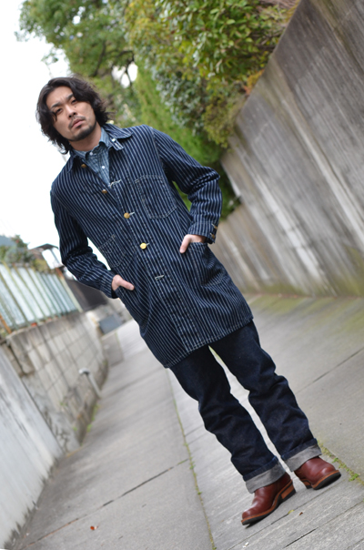 9oz.のウォバッシュストライプ生地を使用したワークコート。