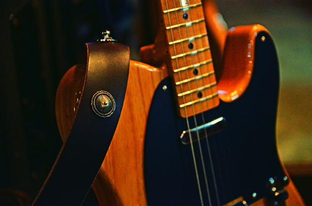ギターストラップも数型企画中でございまして、最近製作したこちらのモデルは長さ調整機能無しの男の一本